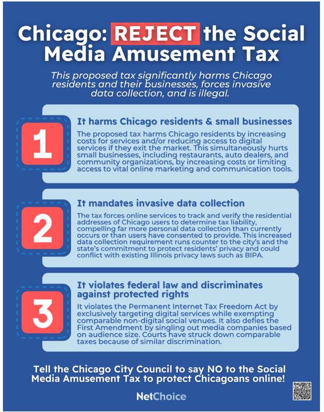 Media and internet free speech advocates Net Choice sent around strongly worded emails this morning, as well as firing off a letter to the Chicago City Council blasting the Bear’s blatantly illegal tax plans.