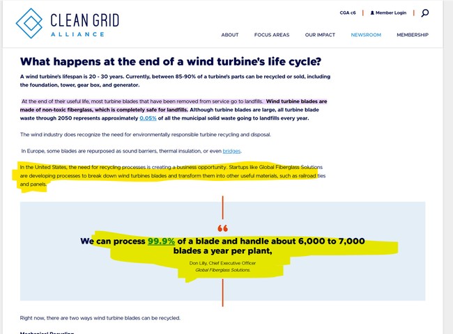 This is the language they’re using in releases touting the ban (and, of course, the ‘yeah, but’)… and what they hope to have ready to handle the blades that keep their lights on. It’s all EU argle-bargle about ‘circularity hubs,’ new waste management practices ‘EMERGING’ (IOW not actually viable and proven yet), more and more companies ‘getting involved,’ and the always deadly ‘creative and innovative solutions.’