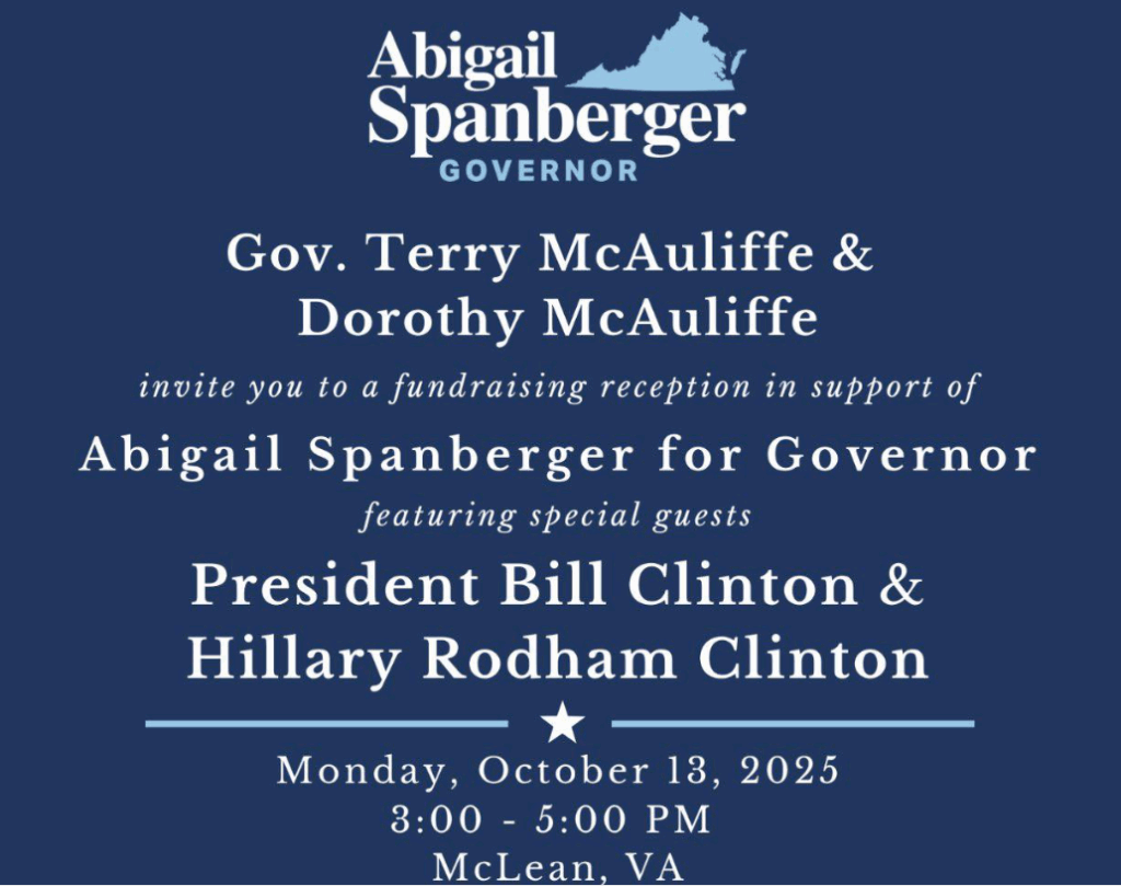 Spanberger leads the race by far in fundraising, with more than $41 million raised through the end of August, compared with her Republican opponent, Lt. Gov. Winsome Earle-Sears, who had raised nearly $17 million. With support from the Clintons and the McAuliffes, Spanberger is expected to widen her fundraising lead.