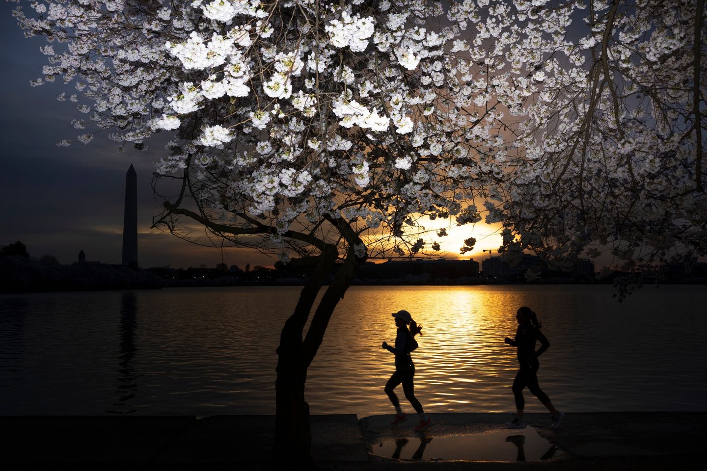 The cherry trees along Washington’s Tidal Basin hit peak bloom Thursday, three days ahead of the National Park Service’s earliest projected date this year.