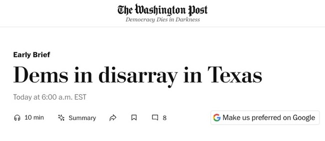 I hear you gasp in disbelief, and I share your pain amusement. But in this case, the Washington Post focuses mainly on the real problem, which is a state party that seems to believe it’s in California rather than Texas. Here’s the headline, in case an editor figures out a way to blame the GOP later today:
