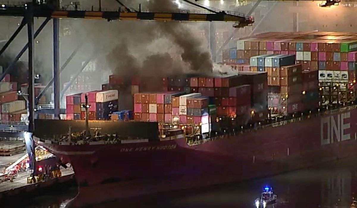 All 23 crew members of the ship were accounted for and there were no injuries from the electrical fire, according to the Los Angeles Fire Department. Officials said they had identified hazardous materials aboard the vessel, the One Henry Hudson.