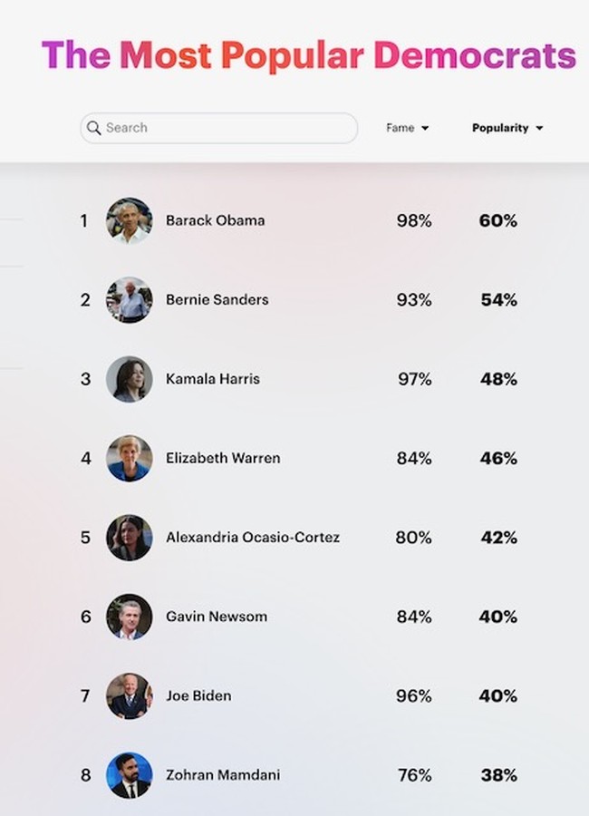And Mamdani is not some fringe figure in the Democratic Party. According to YouGov, he is among the most popular Democrats in the country, all of whom are a rogue’s gallery of anti-Americans. At least, Barack Obama convinced many Democrats he was a center-left figure. None of the rest even comes close to that.