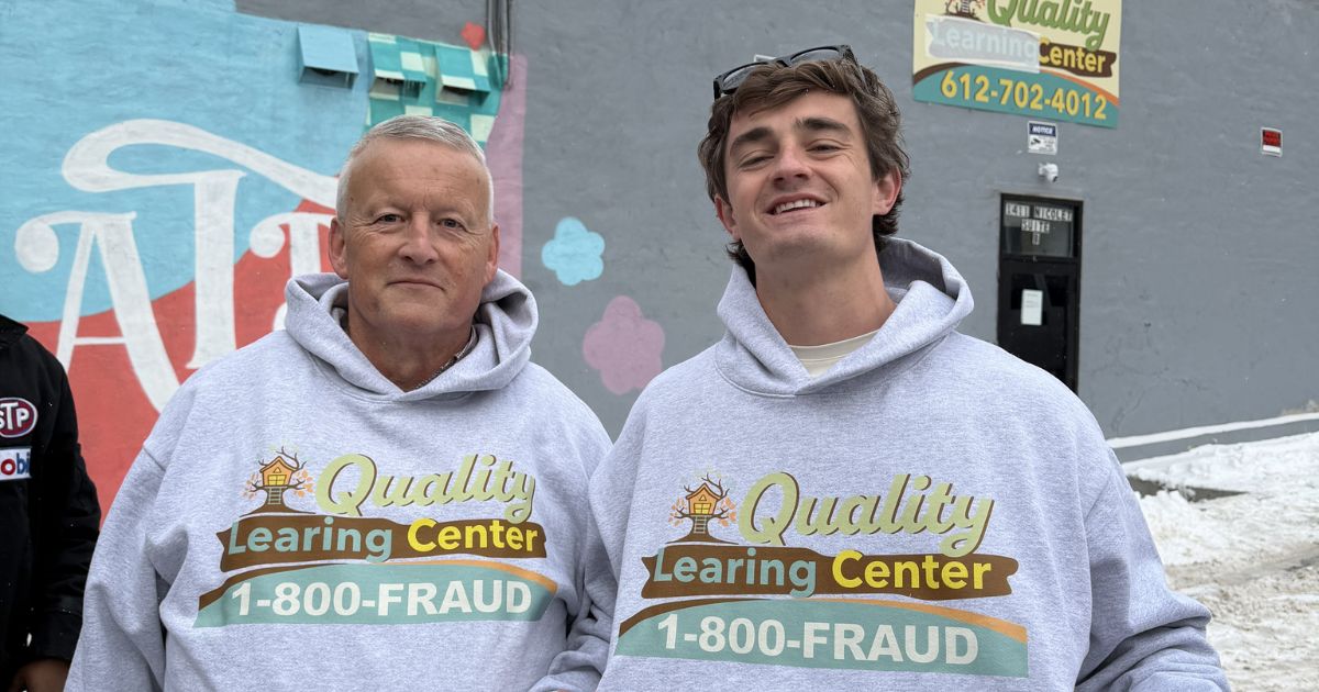 Shirley and David were wearing hoodies emblazoned with Quality “Learing” Center — one of the day cares central to the fraud allegations — and a not-so-subtle “1-800-FRAUD” in the video.