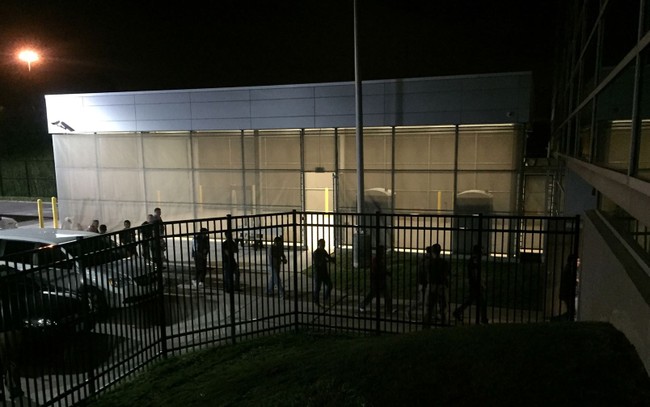 The protest began peacefully as about 100 demonstrators showed up around 9:00 a.m. on Friday and lined up on the street opposite the detention center. Then, about 10:00 a.m., around 50 protesters showed up and crossed the police line. As the cops moved in, the “mostly peaceful” protesters attempted to incite the officers to violence.