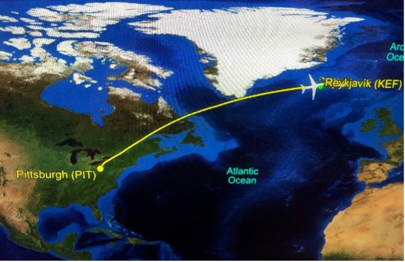 Your editor’s flight track to Iceland. BWK photo.