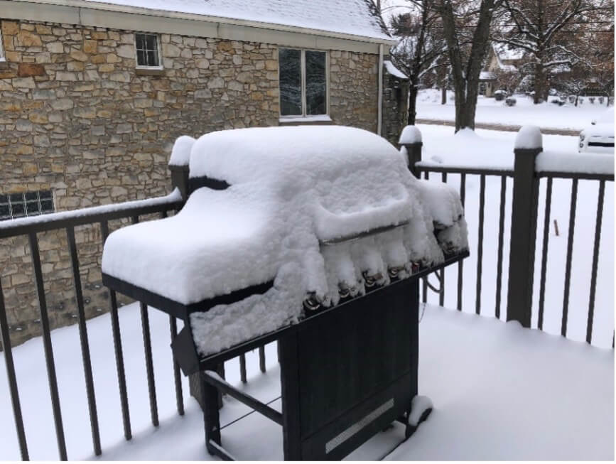 Indeed, with investing as with life, prepare to button up and I mean fast. With markets as with weather, it’s getting c-c-cold outside with a whole bunch of snow as well. For example, this is my grill on the side porch of my house just this past weekend.