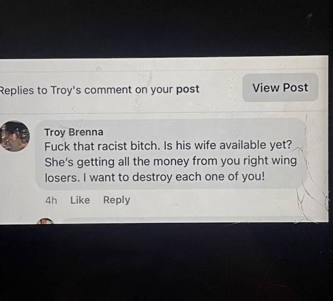 “This is deplorable. How did the assassin miss his big ass head?” a screenshot showing one of Rusk’s Facebook comments said. …