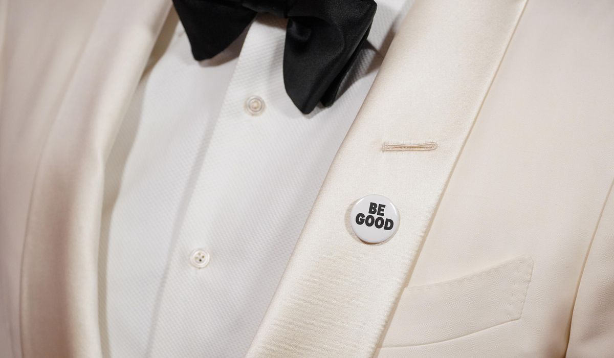 The black-and-white pins displayed slogans like “BE GOOD” and “ICE OUT,” introducing a political angle into the awards show after last year’s relatively apolitical ceremony.