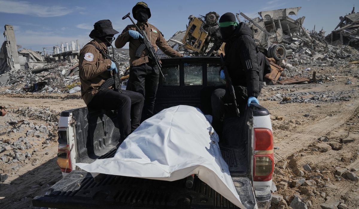 JERUSALEM — Hamas said it would hand over the remains of a hostage as Israel said it will start letting Palestinians leave Gaza through the Rafah border crossing, signs the U.S.-backed ceasefire was holding despite an earlier glitch over returned remains.