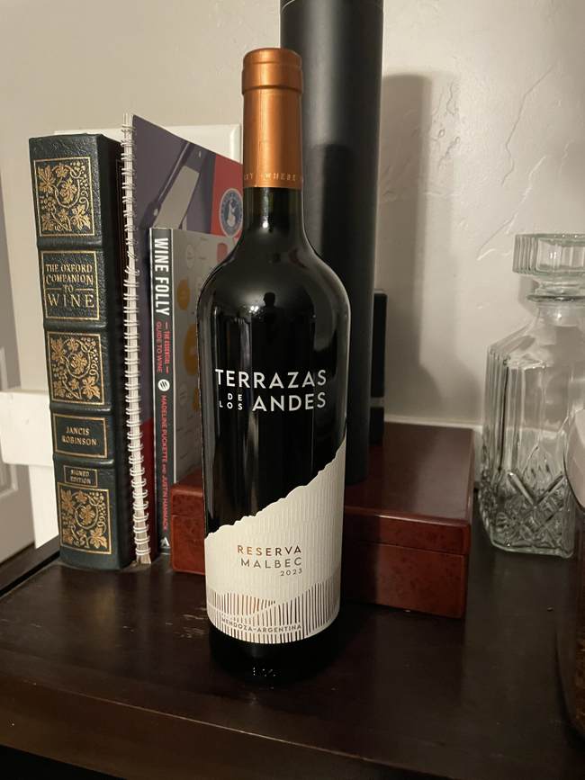 While on vacation, I picked up this bottle of 2023 Terrazas De Los Andes Reserva Malbec: