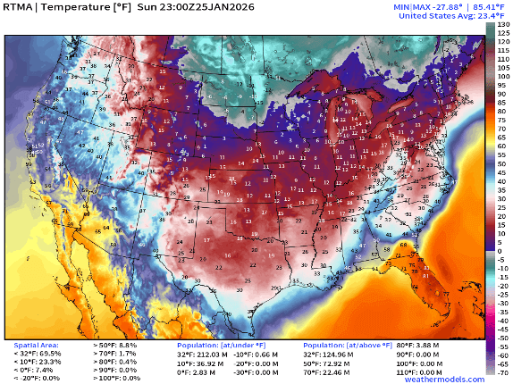 But today? Well… Today the weather IS the economy. And don’t just take my word for it; here’s the temperature map for the Lower 48 states this past Sunday: