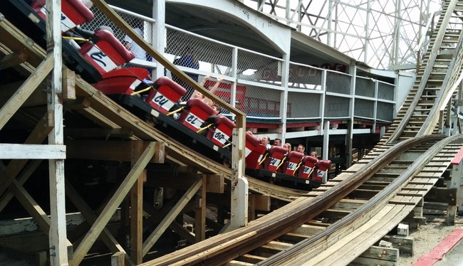 The Cyclone is the name of the iconic wooden roller coaster in Coney Island that has been there for almost 100 years. Like all roller-coasters, it lifts riders to a steep point and then lets them drop just as steeply and race around the track for a few moments of excitement.