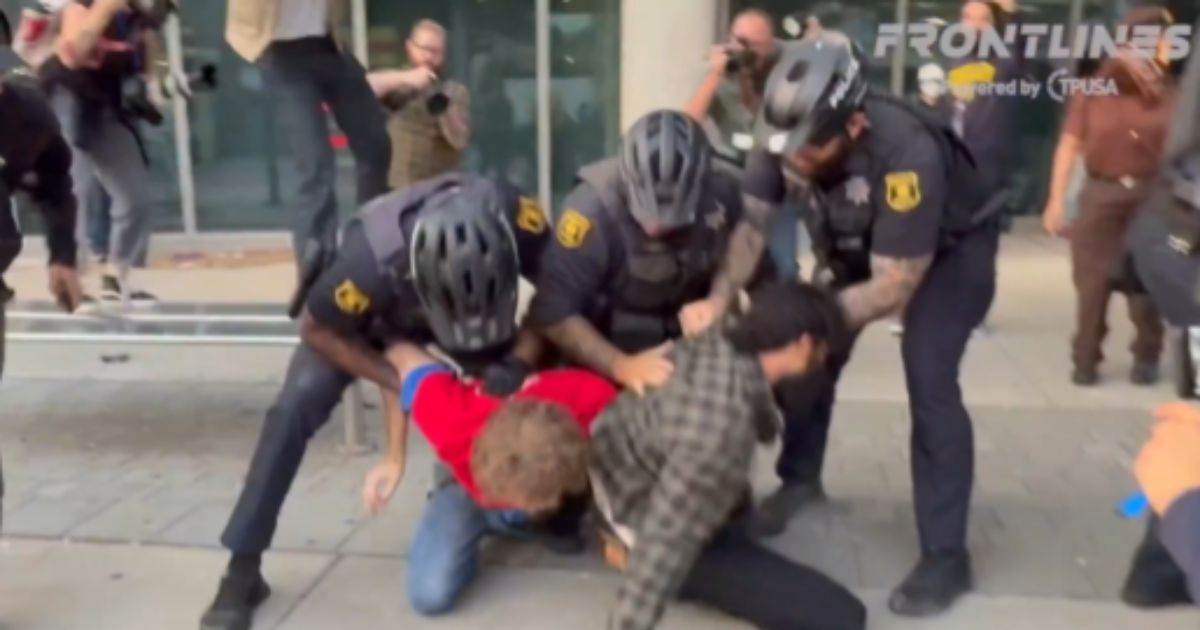 Left-wing protesters disrupted Turning Point USA’s Berkeley event Monday, leading to violent clashes and arrests just two months after the assassination of founder Charlie Kirk.