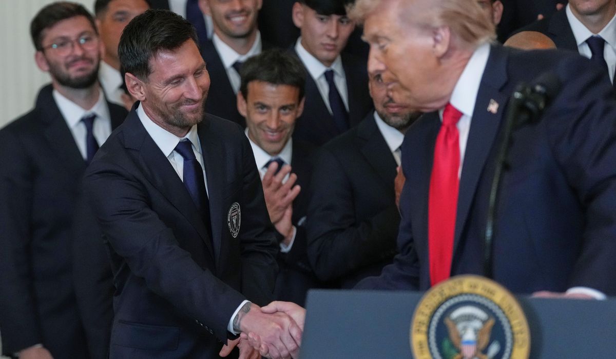 Lionel Messi bestowed President Trump with a bejeweled pink soccer ball during a White House ceremony honoring Inter Miami for winning last year’s MLS Cup.