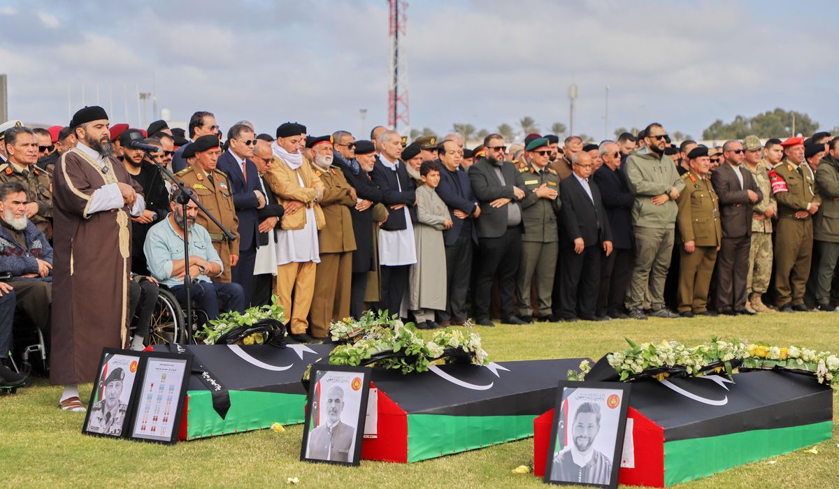 The coffins of Gen. Muhammad Ali Ahmad al-Haddad and two others were brought into a stadium in the coastal city of Misrata, their hometown, for a funeral ceremony that included Prime Minister Abdul-Hamid Dbeibah and other military and political leaders. The bodies will be taken by their families for a private burial elsewhere.