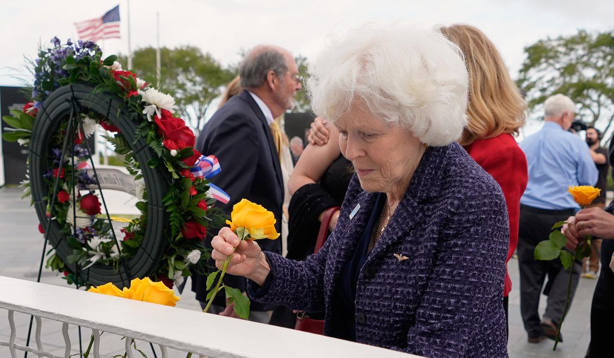 Challenger’s crew included schoolteacher Christa McAuliffe, who was selected from more than 100 teachers representing every state. Two of her fellow teacher-in-space contenders – both retired now – attended the memorial.