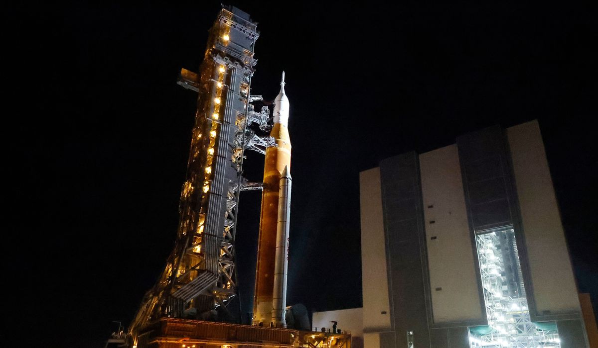 CAPE CANAVERAL, Fla. — For the second time this year, NASA moved its moon rocket from the hangar out toward the pad Friday in hopes of launching four astronauts on a lunar fly-around next month.