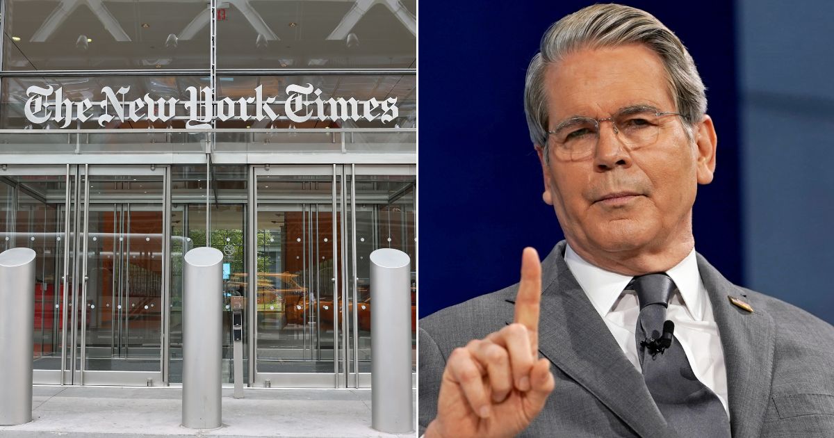 Treasury Secretary Scott Bessent blasted the so-called national “newspaper of record” Wednesday for attacking President Donald Trump’s physical fitness for office while reminding his audience of the paper’s shameful covering for former President Joe Biden’s all-too-evident frailties.