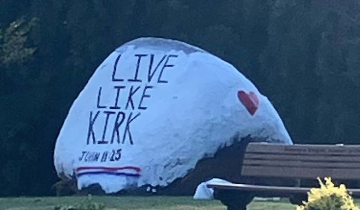 The student, identified in the lawsuit as G.S., and her friends had painted a heart, an American flag, “Freedom 1776,” and “Live Like Kirk — John 11:25” on the large rock near the entrance of Ardrey Kell High School.