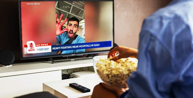 Here he is, a victim of an Israeli air raid, writhing in pain in a Gaza hospital, his slender frame dotted by wires and electrodes. And there he goes again, a day or two later: He’s a radiologist now, helping a blood-smeared patient into a small MRI machine. Since Oct. 7 he has died on camera—not once but twice—and then, like Lazarus, come back to life. He sired a (fake, plastic) child, then lost it in a bombing; found work as a foreign correspondent; picked up a gun and joined the fighting; laughed joyfully when Jews were slaughtered; wept bitterly when the Jews struck back; discovered his calling as a singer; led us on guided tours of his shelled-out hometown.