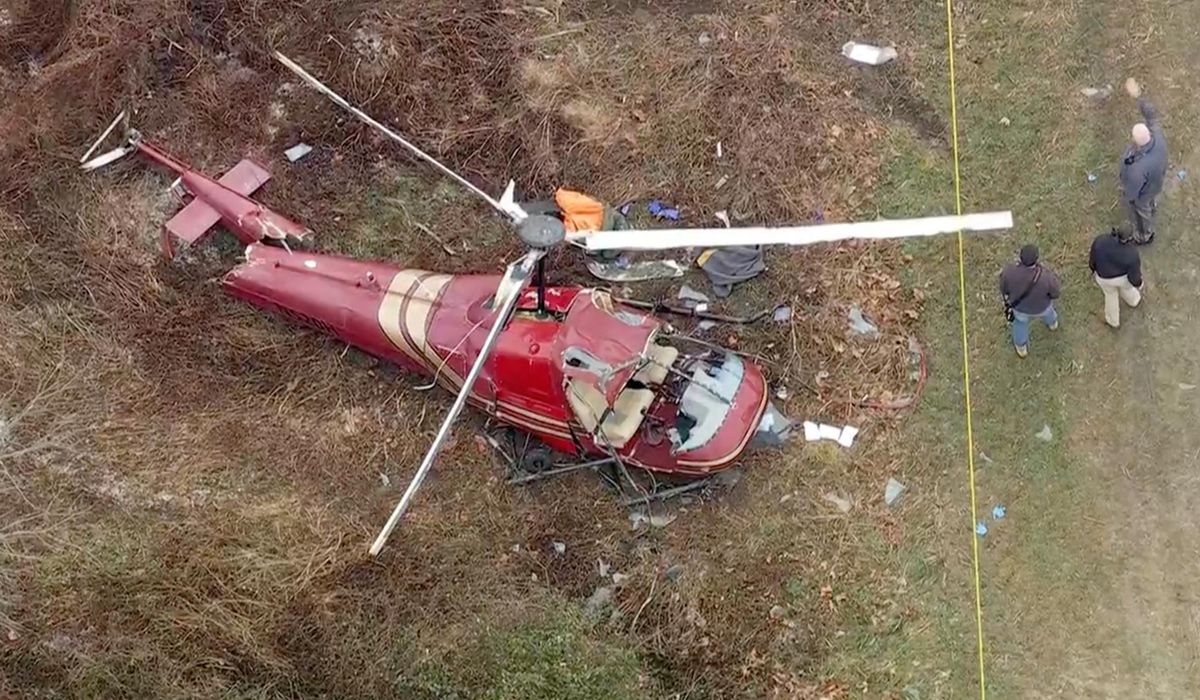 One person was killed and another was transported to a nearby hospital with life-threatening injuries. Video from the scene showed a helicopter spinning rapidly to the ground.