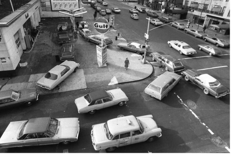 Gas lines at filling station, 1973. Courtesy Time-Life Images.