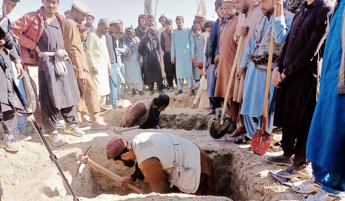 On Saturday, several thousand people attended funeral prayers in Paktika. They sat in the open air as loudspeakers broadcast sermons and condemnation.