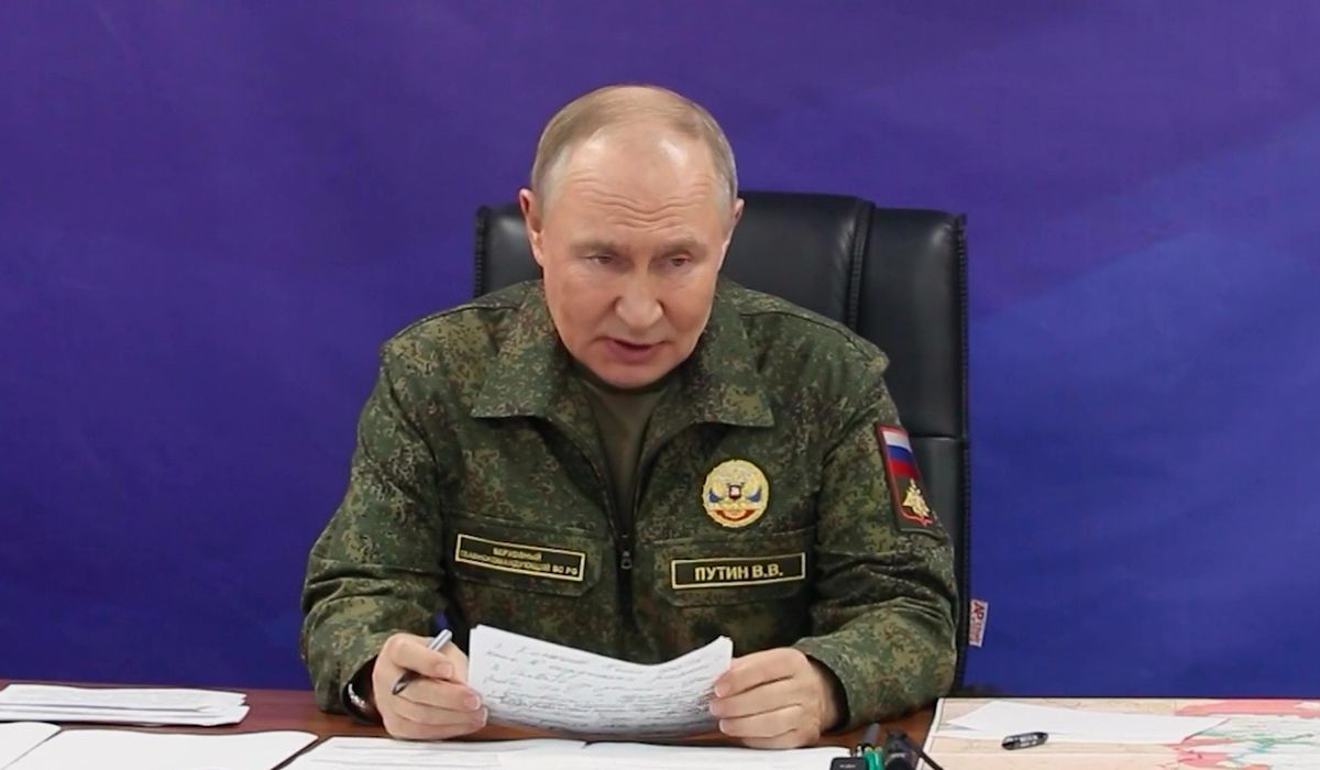 • Russian President Vladimir Putin appeared in an official video wearing camouflage fatigues to receive the test report from Russia’s chief of general staff.