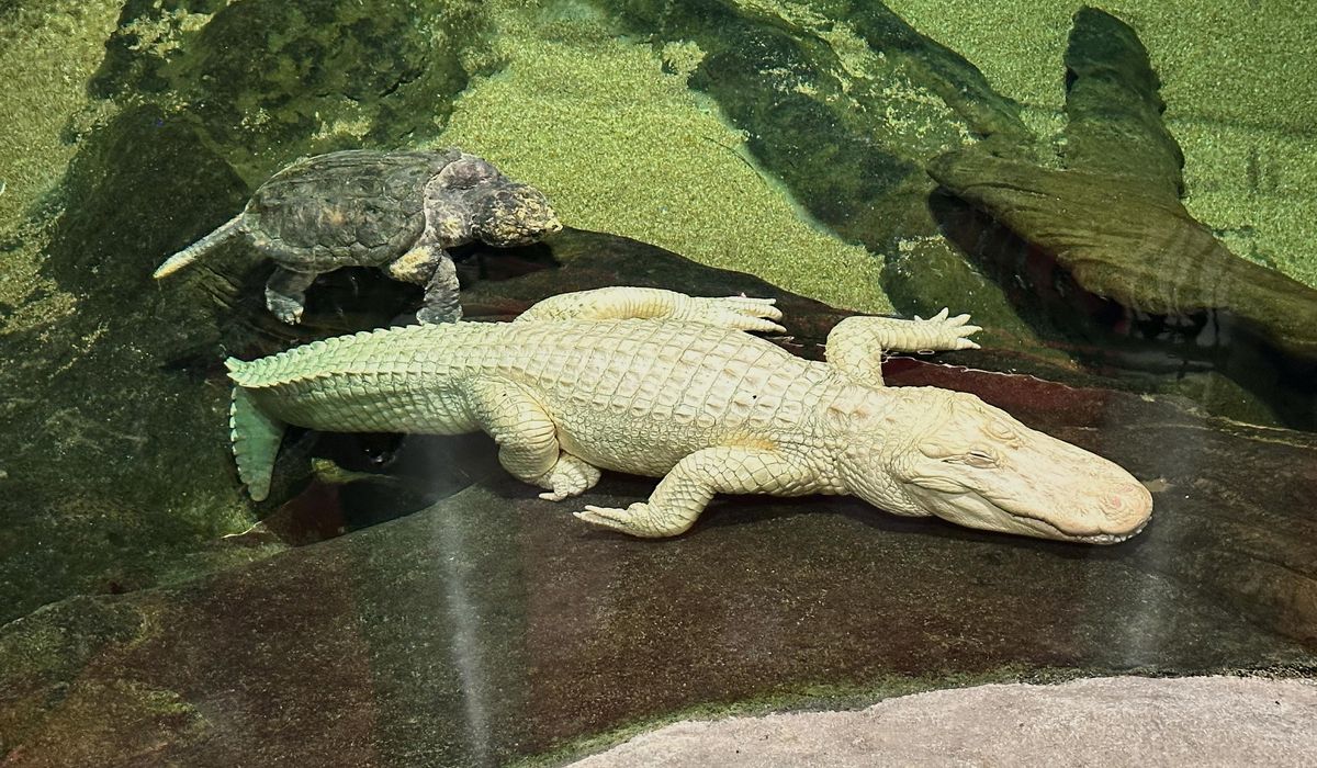 Albino alligators do not survive for long in the wild, but American alligators can live up to 70 in captivity. The museum rang in Claude’s 30th birthday in September with festivities, speeches and a special alligator birthday cake made of fish and ice.