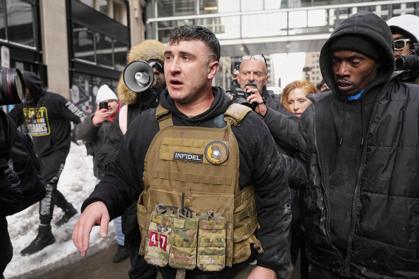 Police said another protester was arrested for using pepper spray, and three others handcuffed for disorderly conduct and obstructing traffic. Authorities said no one was harmed during the demonstrations.