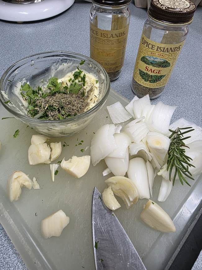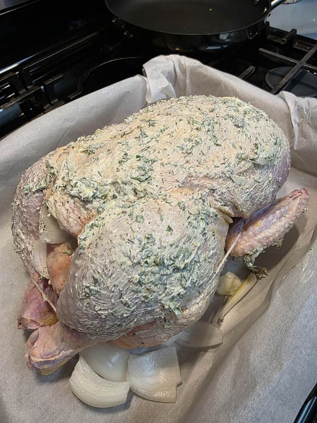 - The herb mix I use in the butter schmear is what I use for our Thanksgiving turkey, too – no ‘poultry spice’ out of a can here