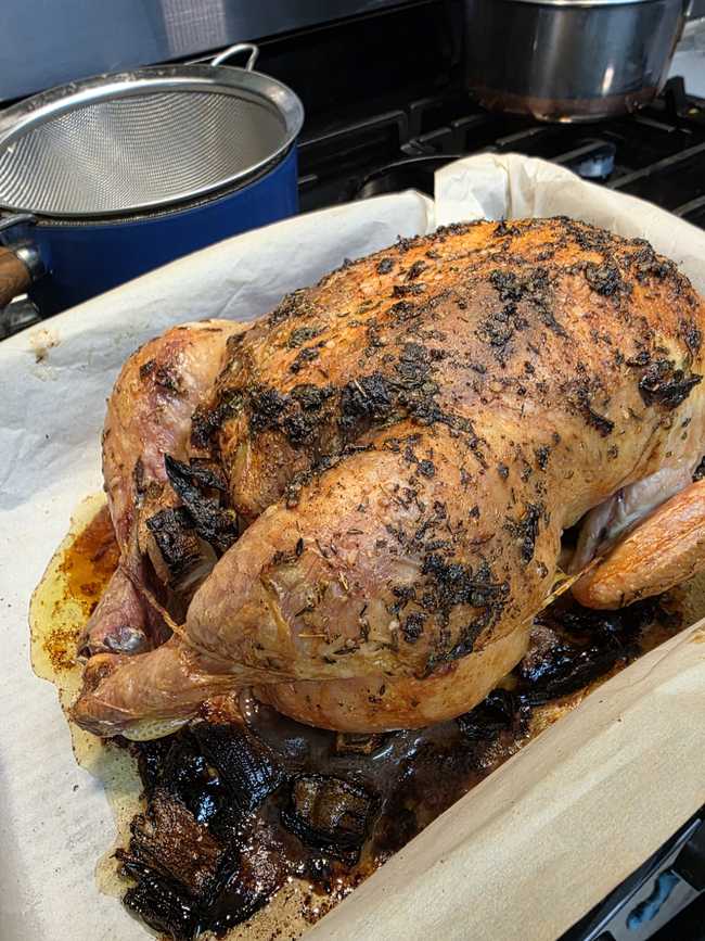 As everyone seemed to enjoy the Sunday break when I shared my Cincinnati chili recipe, I thought I’d drop in one of the most classic recipes ever, and sometimes one of the hardest to pull off – a roast chicken, with a gravy hack for you. And now, with things all aflutter in the world around us at the moment, it might be nice to have something so quintessentially American in your back pocket for those occasional food moments.
