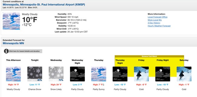 When it really gets cold in Minnesota, you almost need a spacesuit. With a windchill of -15, it takes less than half an hour to get frostbite, which can cost you a limb. You can dress for the weather, but no sane person chooses to be out in it for long.