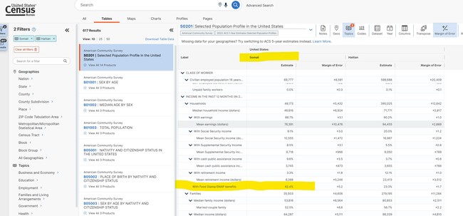 42%, or nearly half of all the Somalis in the US, are receiving SNAP payouts every month.