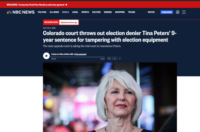 “The trial court’s comments about Peters’s belief in the existence of 2020 election fraud went beyond relevant considerations for her sentencing,” a three-judge panel wrote in a 77-page opinion that also upheld her conviction on charges including official misconduct in connection with a security breach of Mesa County’s voting system.