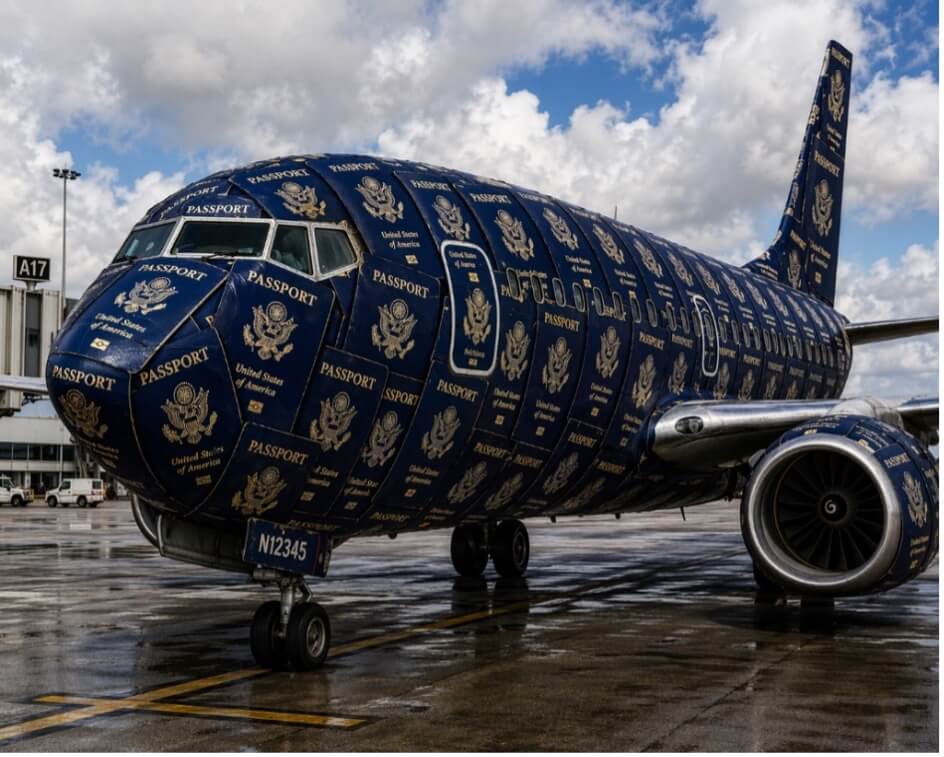 Hey everybody! Your US passport is an airline flight away. Image via ChatGPT.