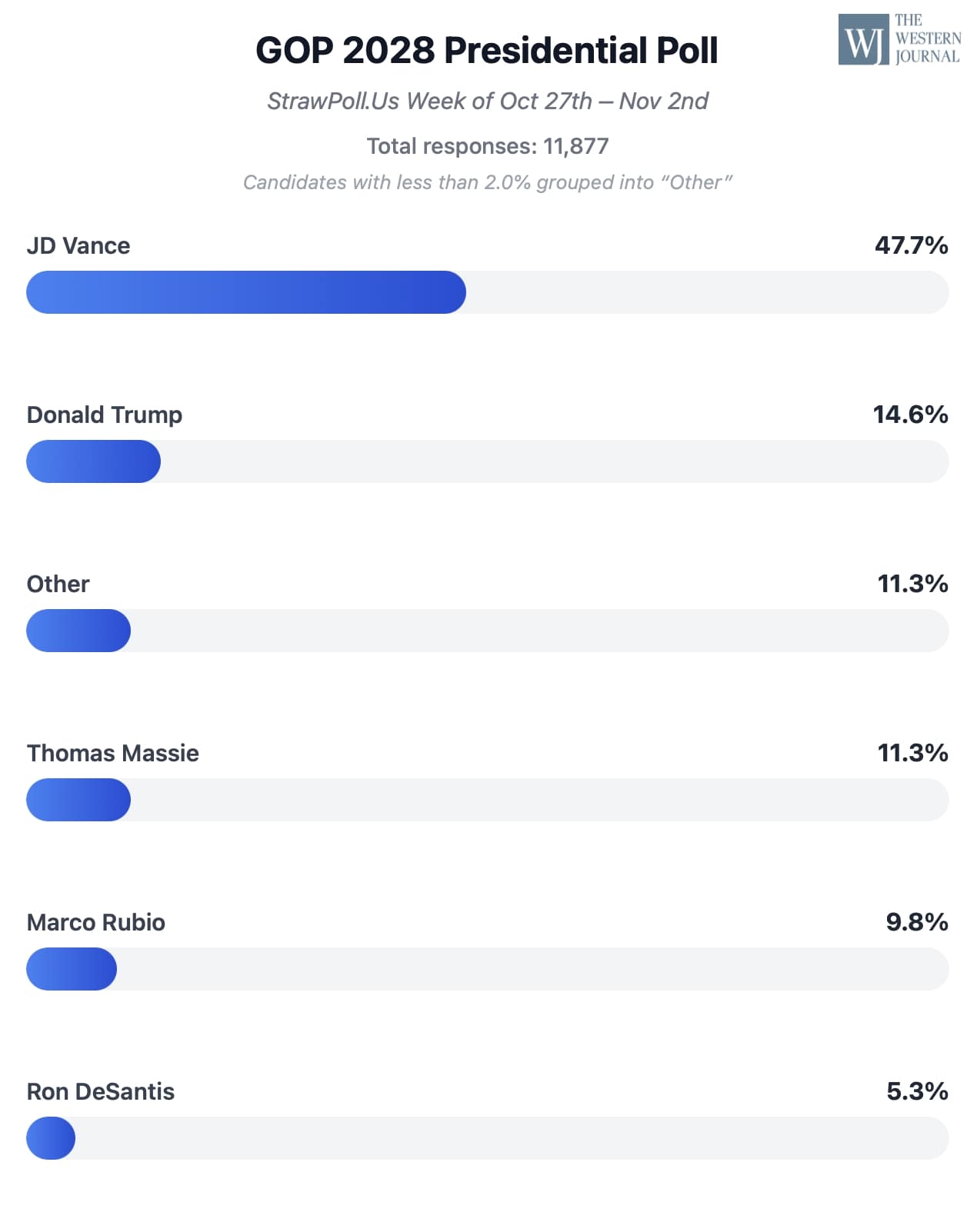 This week’s Western Journal straw poll saw Vice President J.D. Vance and President Donald Trump holding their edge over the field.
