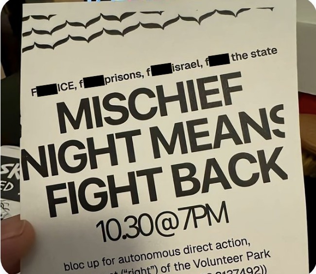 Antifa allegedly planned a “mischief night” on Thursday evening, Halloween Eve. So that makes just another day that ends in a y.