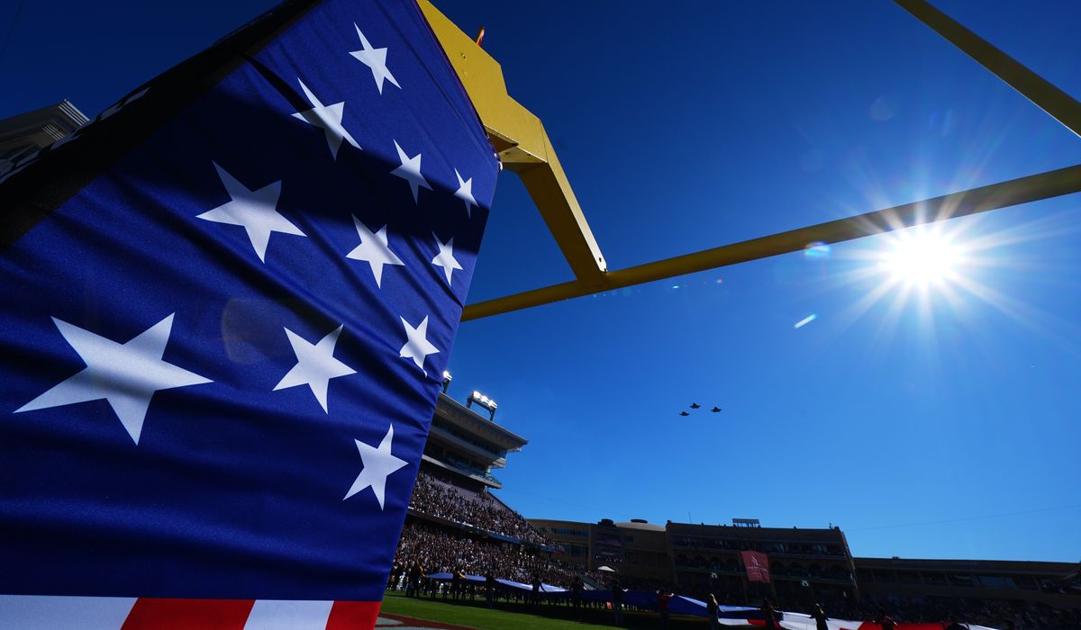 “Today the winds were a little tricky and one of the jumpers kinda got behind the power curve. He did the best he could do, he did not land in the crowd, he did land behind the goal post but without a scratch he walked away,” All Veteran Group President Mike Elliott said on social media, adding that no one in the group was injured during their landing.